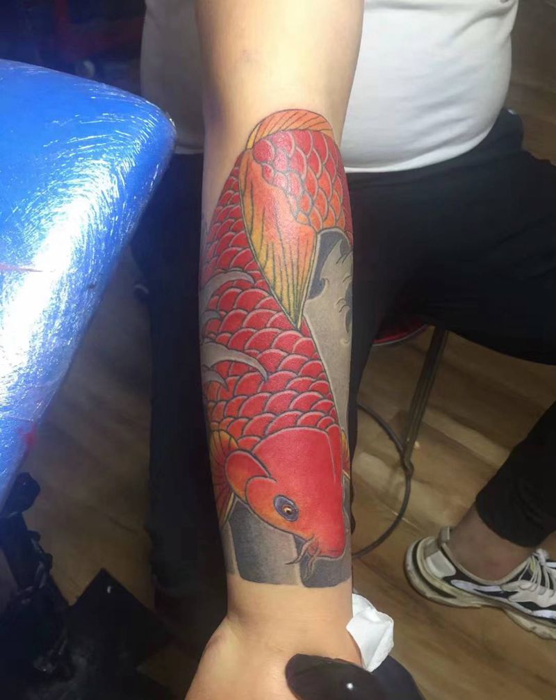 当前位置: 首页 >山东省莱芜市纹身店-杰刺堂纹身纹身图案>日式鱼纹身图片_手臂老传统鱼泡泡云纹身图案