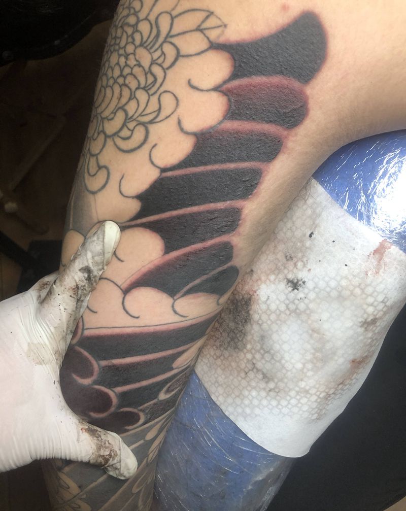 • T网红王老大花腿龙纹身图片_腿部新传统纹身图案