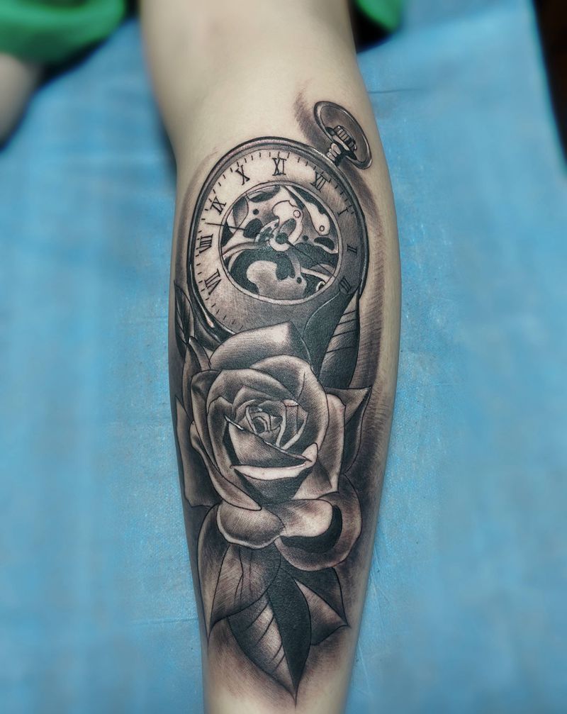 当前位置: 首页 >山东省临沂市纹身店-戊戌刺青纹身图案>欧美时钟玫瑰纹身图片_腿部欧美写实纹身图案