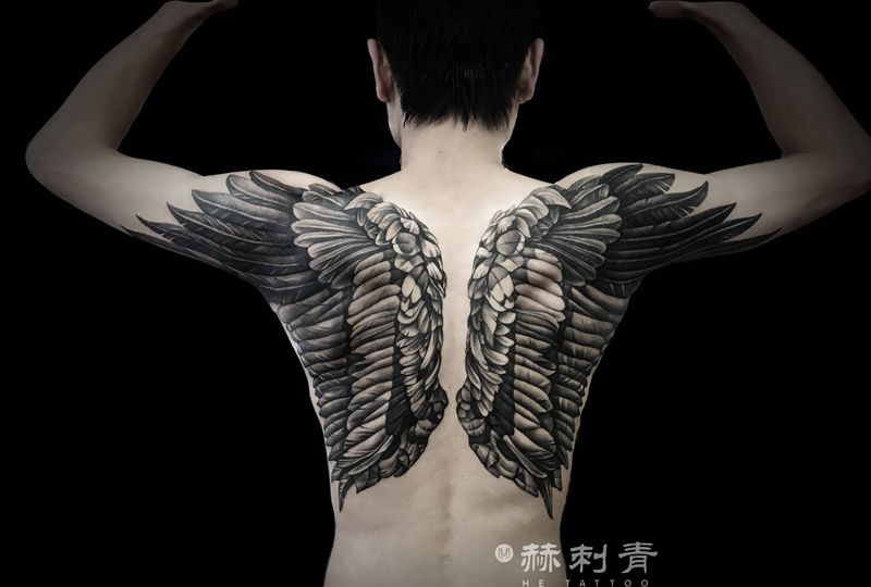 当前位置: 首页 >山东省临沂市纹身店-赫刺青纹身图案>翅膀纹身图片_背部欧美写实纹身图案