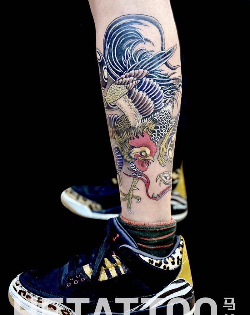• T网红王老大花腿龙纹身图片_腿部新传统纹身图案