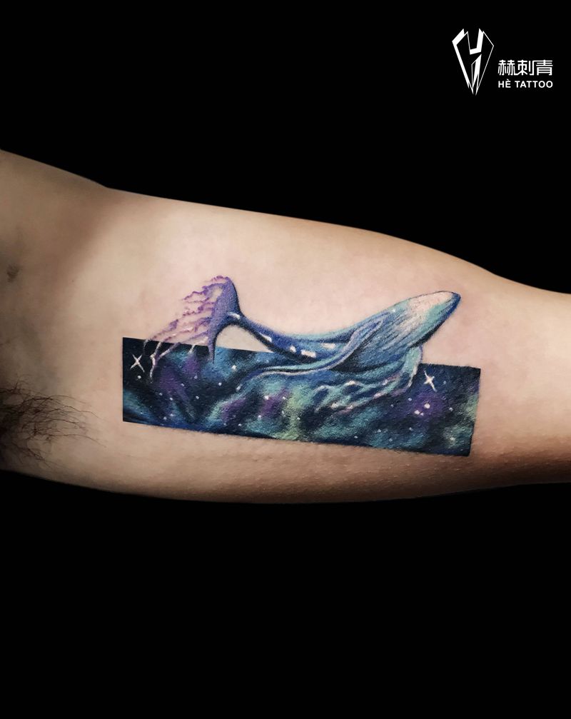 遮盖-蓝鲸纹身图片_手臂水彩纹身图案
