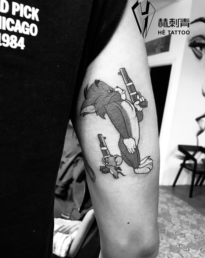 当前位置: 首页 >山东省临沂市纹身店-赫刺青纹身图案>猫和老鼠纹身图片_手臂纹身图案