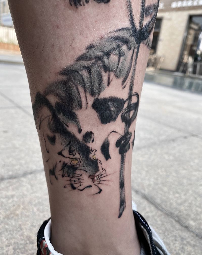 2020书法第二名纹身图片_腿部水墨书法纹身图案