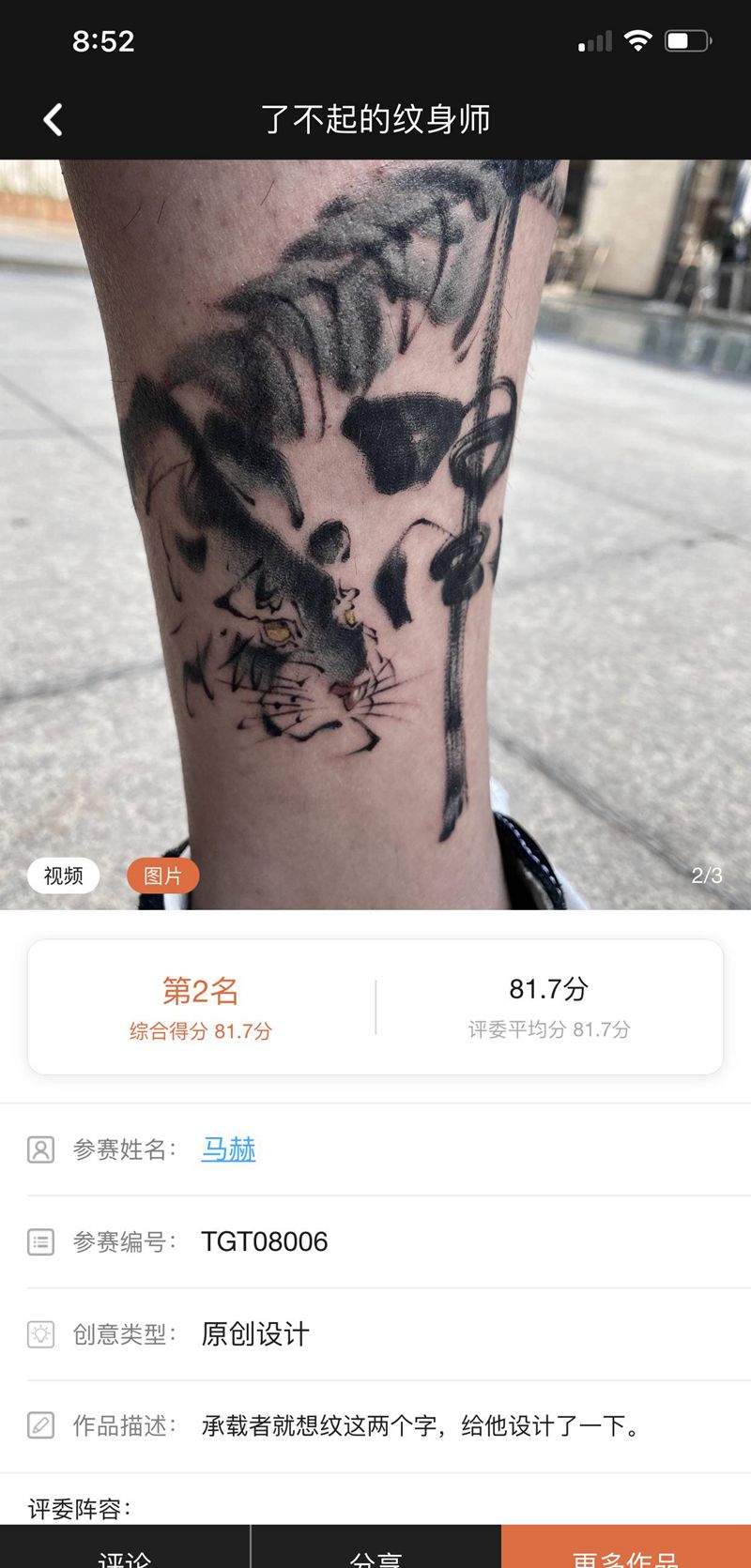 2020书法第二名纹身图片_腿部水墨书法纹身图案