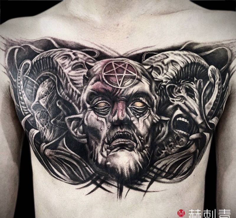 暗黑写实纹身图片_胸部欧美写实纹身图案