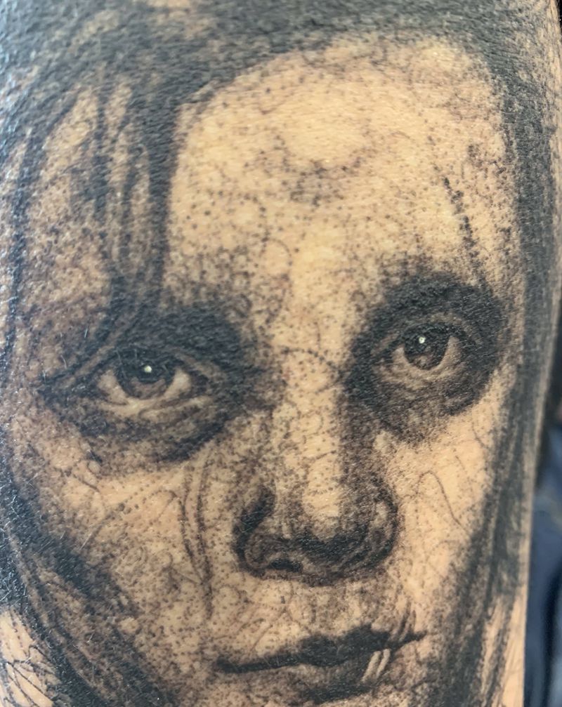 • T包小腿吹火男+阿多福纹身图片_腿部老传统新传统吹火男阿