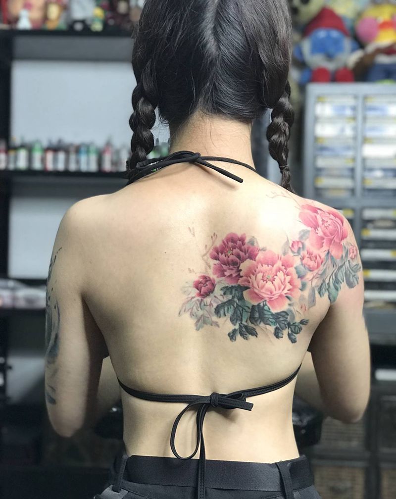 当前位置: 首页 >山东省临沂市纹身店-赫刺青纹身图案>小写意牡丹纹身图片_肩部水墨水彩纹身图案