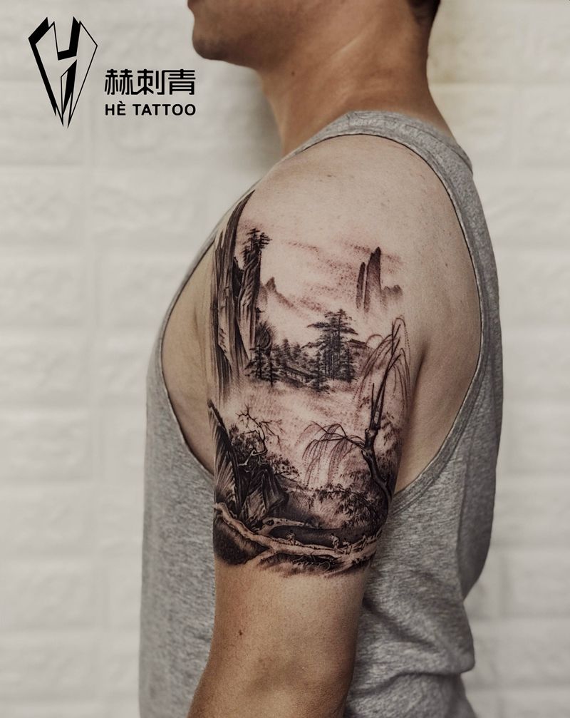 • 纹身吧推荐的披肩图腾半胛纹身图案作品展示