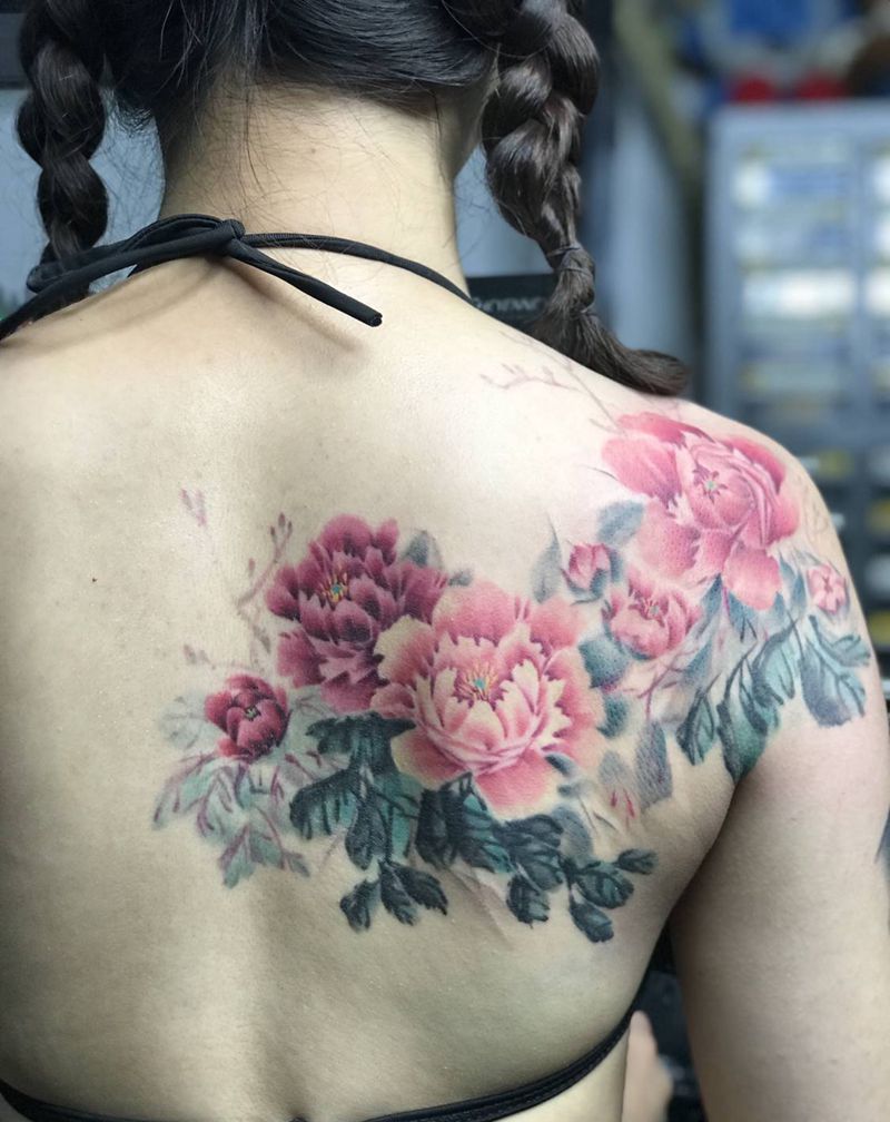 当前位置: 首页 >山东省临沂市纹身店-赫刺青纹身图案>小写意牡丹纹身图片_背部水墨水彩牡丹纹身图案