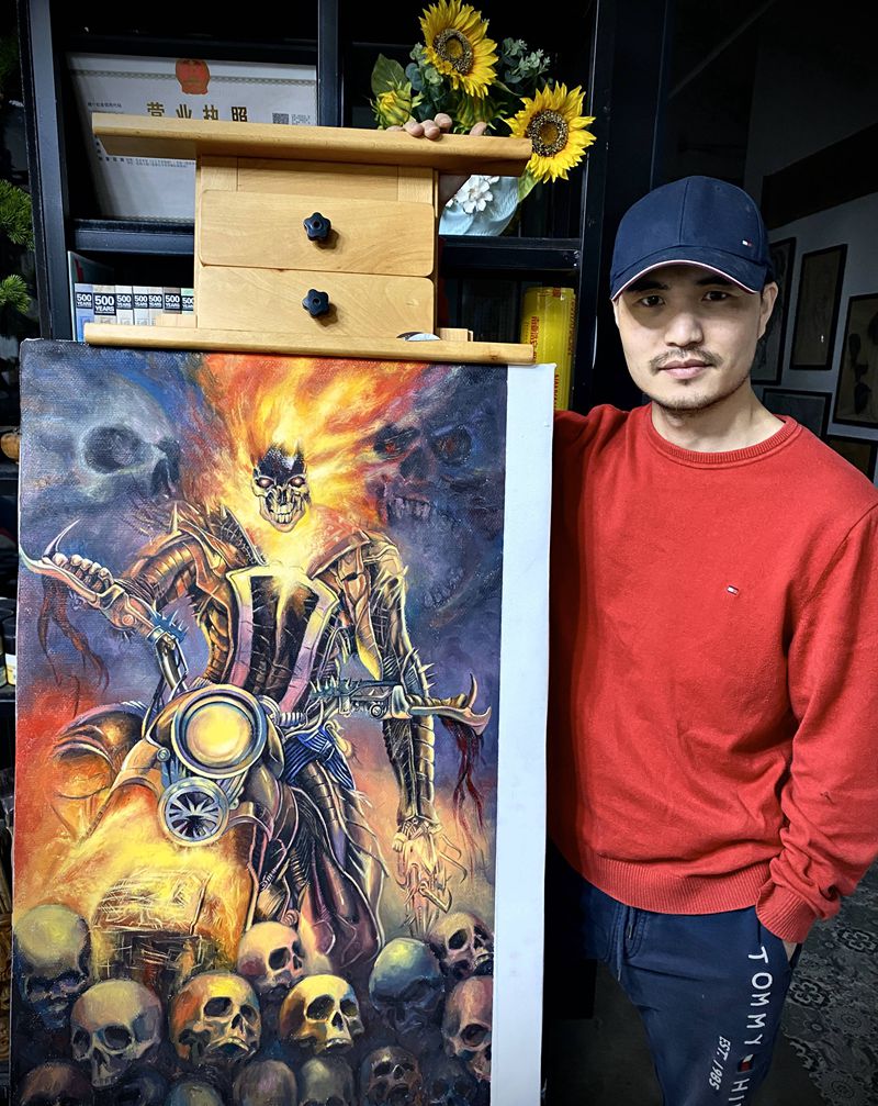 当前位置: 首页 >山东省临沂市纹身店-赫刺青纹身图案>恶灵骑士纹身图片_欧美写实油画纹身图案