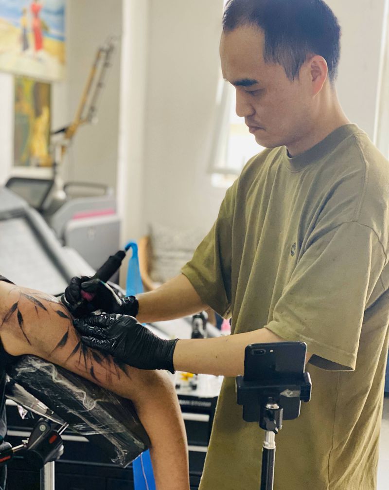 • T网红王老大花腿龙纹身图片_腿部新传统纹身图案