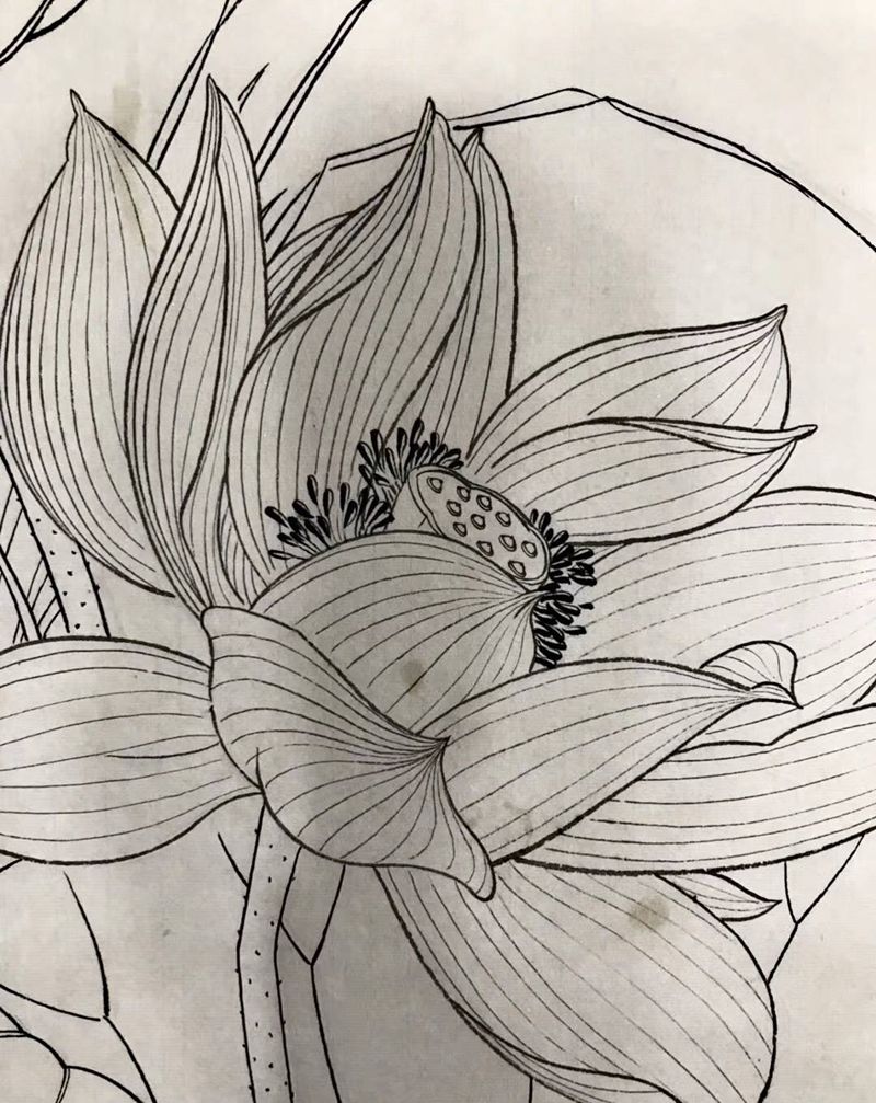 工笔荷花-线纹身图片_工笔纹身图案