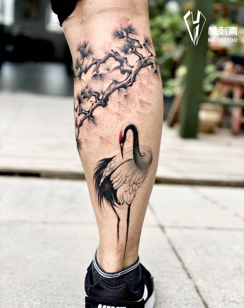 当前位置: 首页 >山东省临沂市纹身店-赫刺青纹身图案>鹤纹身图片_腿部水墨纹身图案