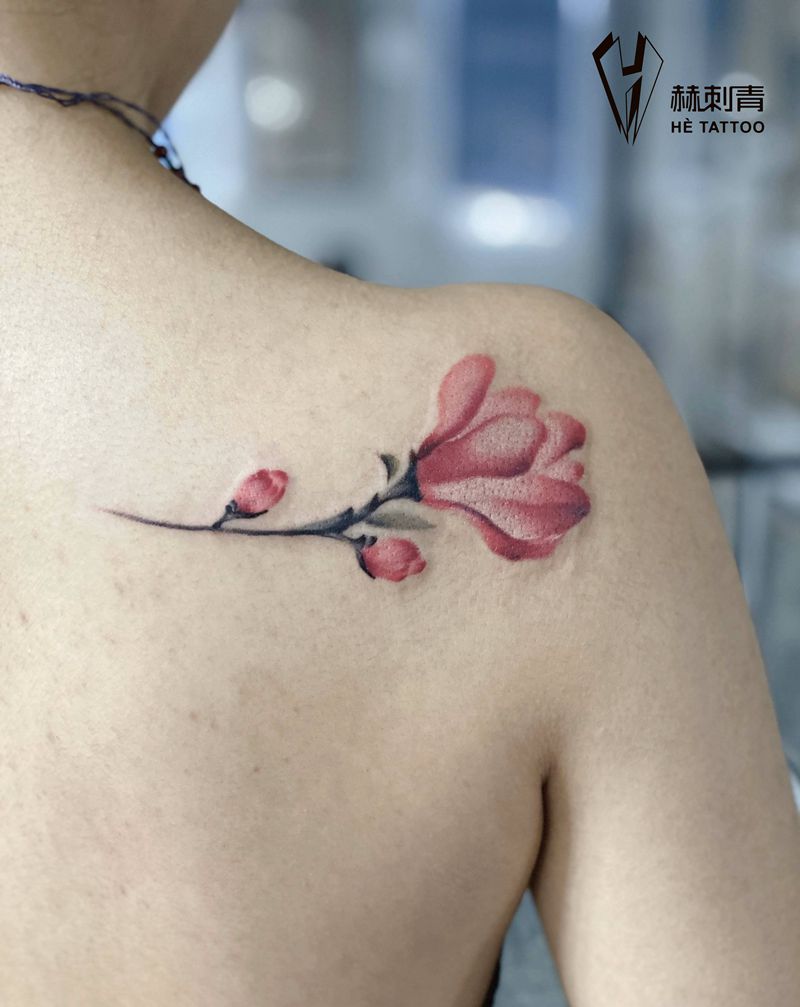玉兰纹身图片_肩部纹身图案