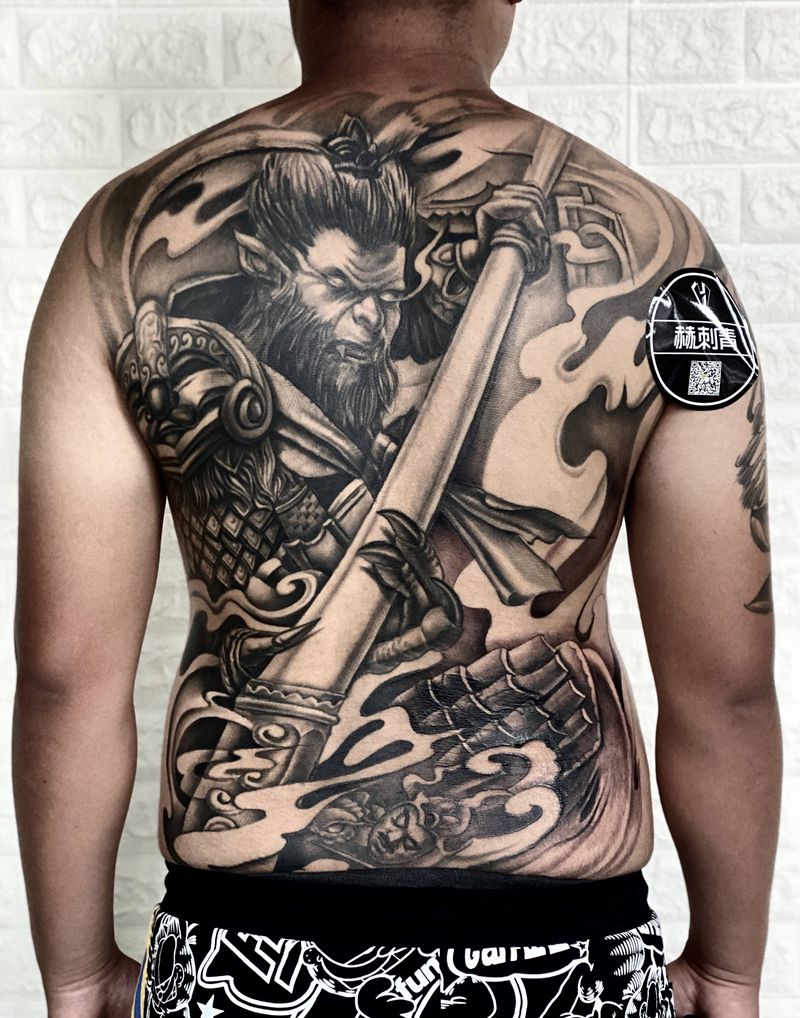 黑灰满背纹身图案