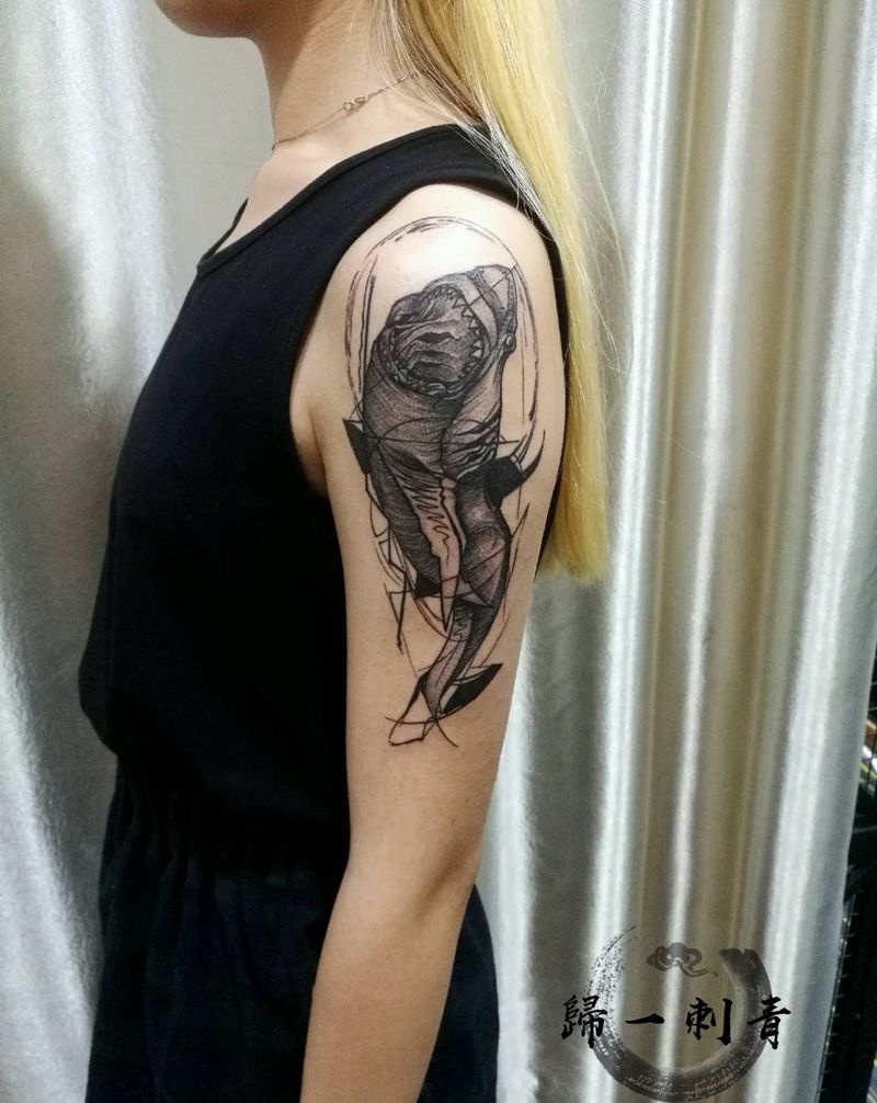 当前位置: 首页 >山东省临沂市纹身店-歸一刺青纹身图案>速写风纹身图片_肩部手臂几何纹身图案
