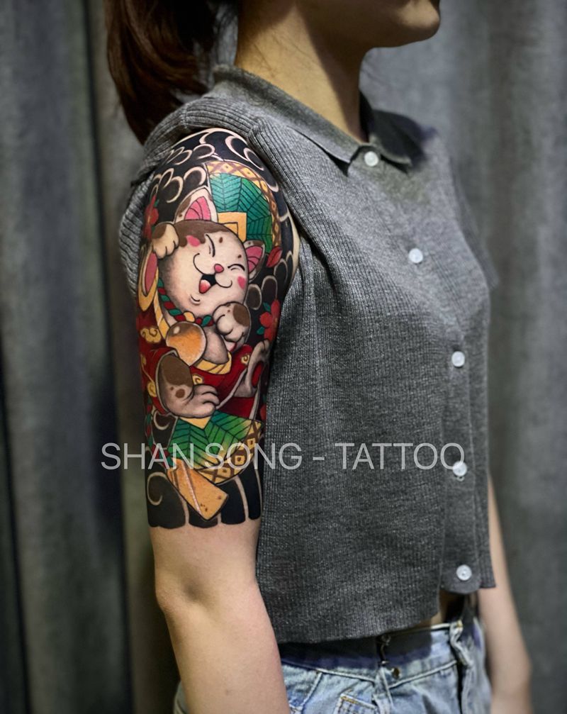 当前位置: 首页 >山东省临沂市纹身店-临沂市罗庄区松刺青纹身图案>大臂招财猫纹身图片_手臂手部老传统纹身图案