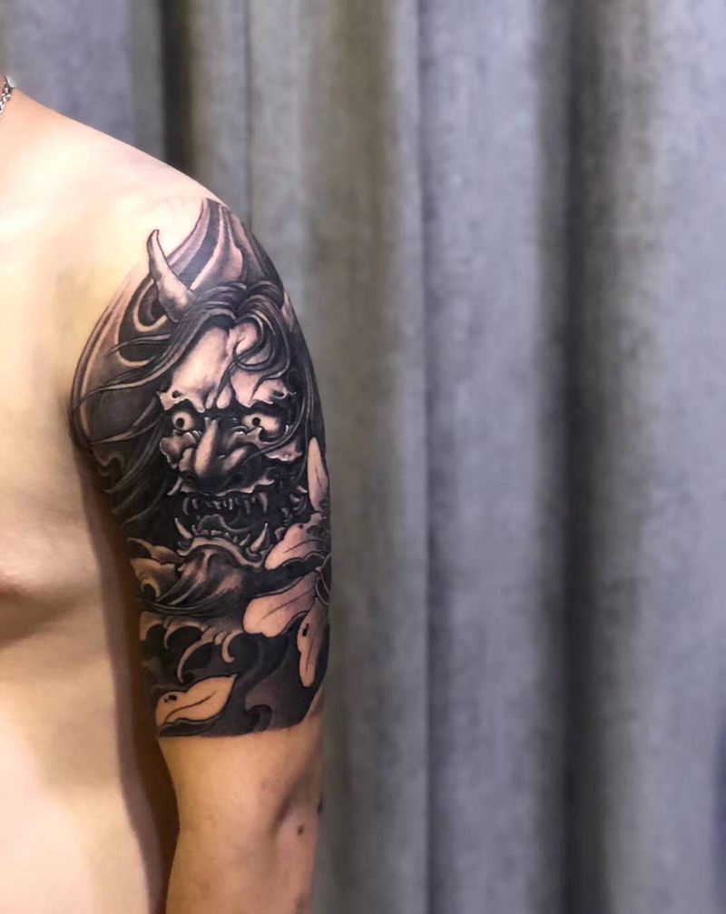 当前位置: 首页 >山东省临沂市纹身店-临沂市罗庄区松刺青纹身图案>般若纹身图片_臀部手臂新传统纹身图案