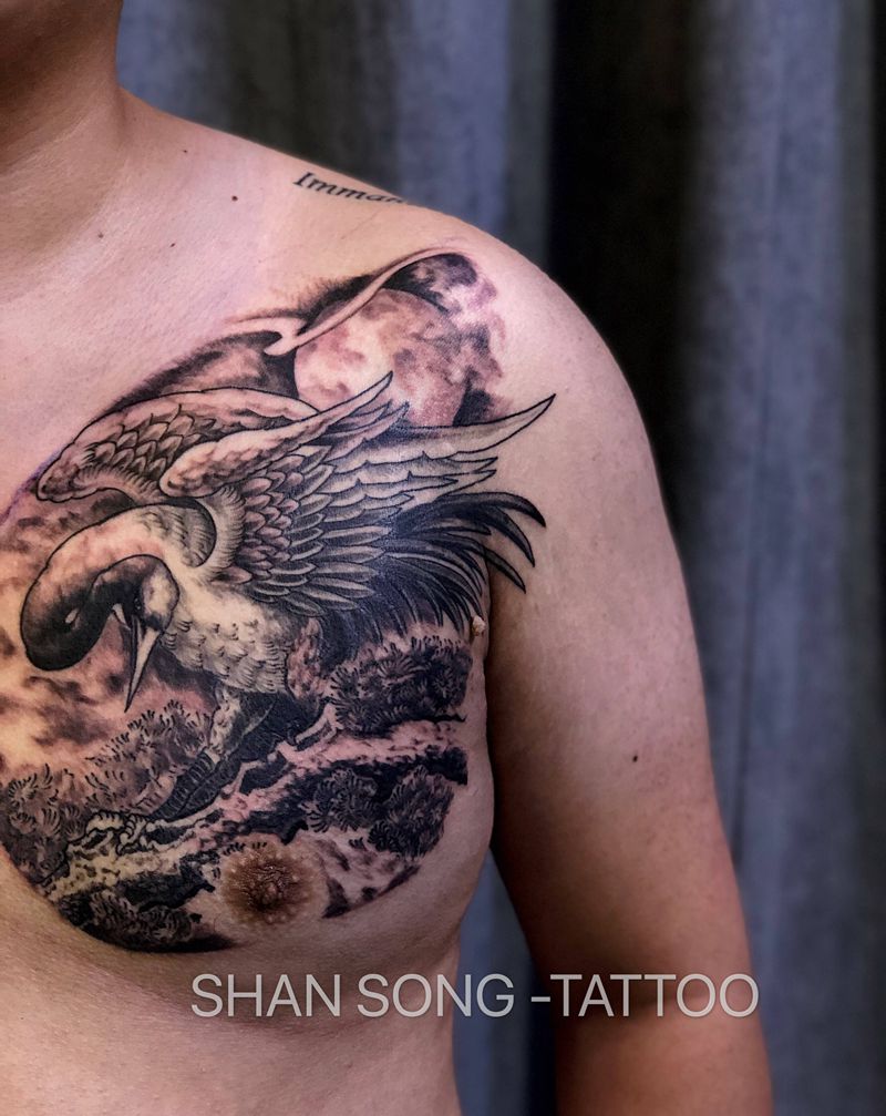 当前位置: 首页 >山东省临沂市纹身店-临沂市罗庄区松刺青纹身图案>鹤纹身图片_胸部肩部老传统新传统中国风 鹤纹身图案