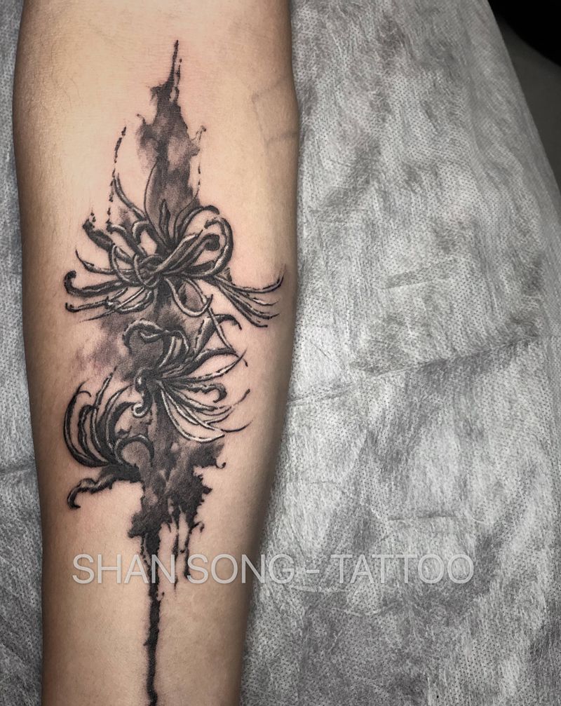 彼岸花纹身纹身图片_手部手臂水墨水彩纹身图案