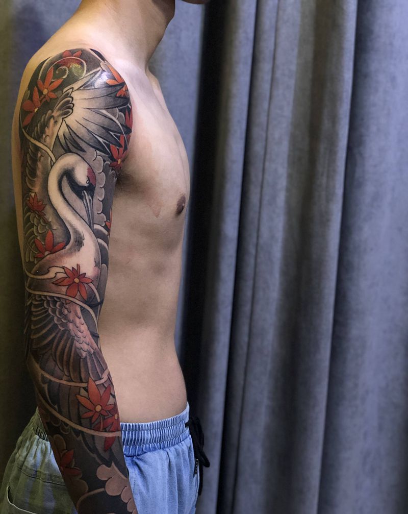 当前位置: 首页 >山东省临沂市纹身店-临沂市罗庄区松刺青纹身图案>日式花臂 鹤纹身图片_手臂手部老传统新传统纹身图案