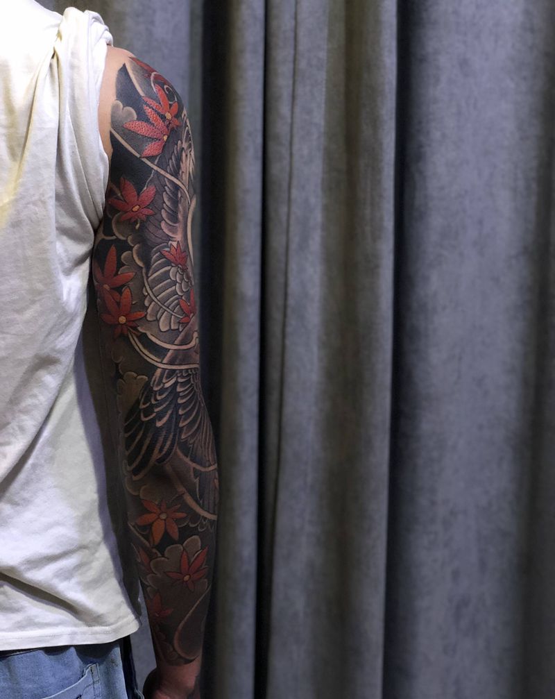 当前位置: 首页 >山东省临沂市纹身店-临沂市罗庄区松刺青纹身图案>日式花臂 鹤纹身图片_手臂手部老传统新传统纹身图案