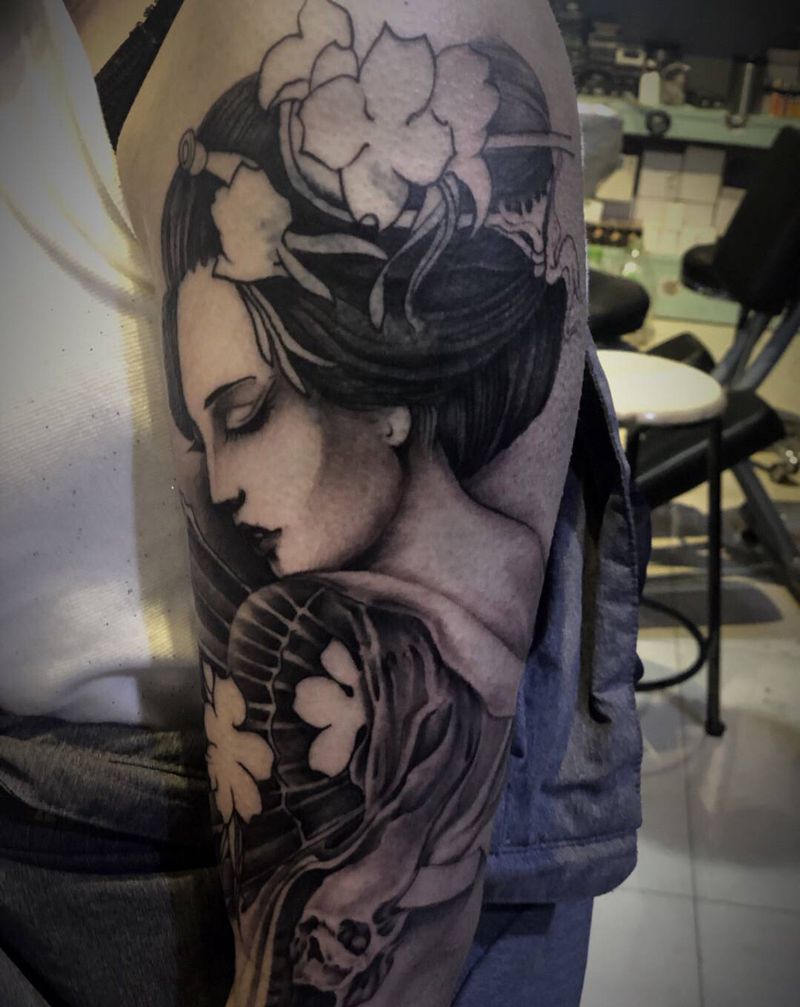 当前位置: 首页 >山东省临沂市纹身店-临沂市罗庄区松刺青纹身图案>艺伎遮盖纹身图片_肩部手臂纹身图案