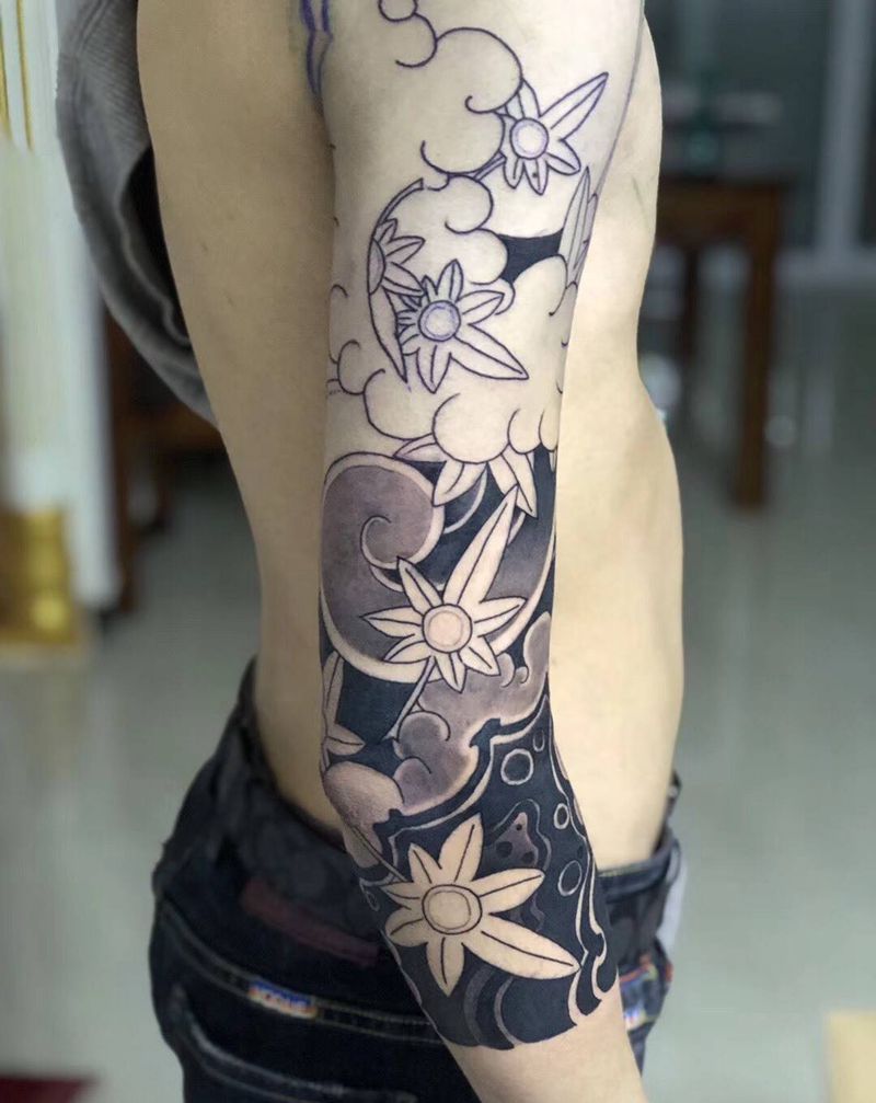 当前位置: 首页 >山东省临沂市纹身店-临沂市罗庄区松刺青纹身图案>传统七分袖。纹身图片_手臂老传统纹身图案