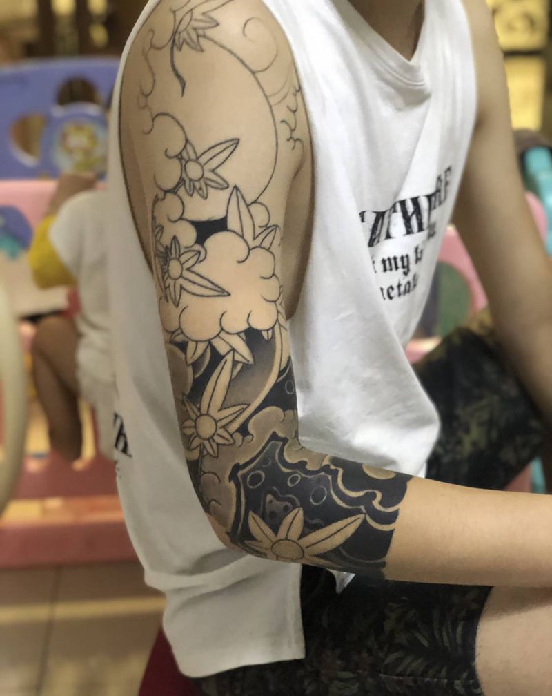 当前位置: 首页 >山东省临沂市纹身店-临沂市罗庄区松刺青纹身图案>日式七分袖(未完成)纹身图片_手臂老传统纹身图案