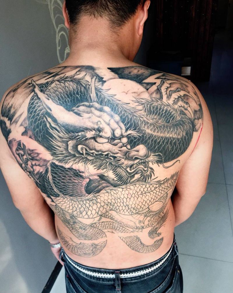 • T云龙九郎纹身图片_背部老传统云龙九郎纹身图案