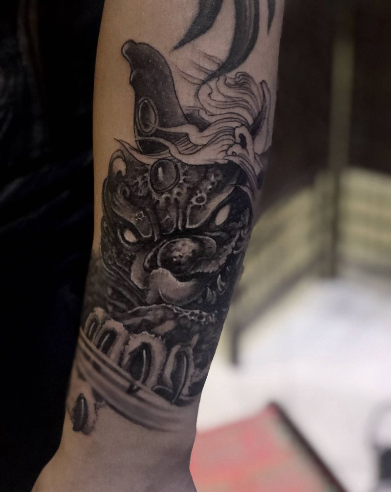 当前位置: 首页 >山东省临沂市纹身店-临沂市罗庄区松刺青纹身图案>貔貅 未完成纹身图片_手部手臂新传统纹身图案