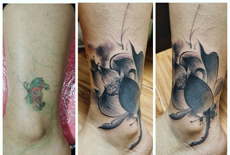 当前位置: 首页 >山东省临沂市纹身店-墨金刺青纹身图案>荷花纹身图片_脚部腿部水墨纹身图案