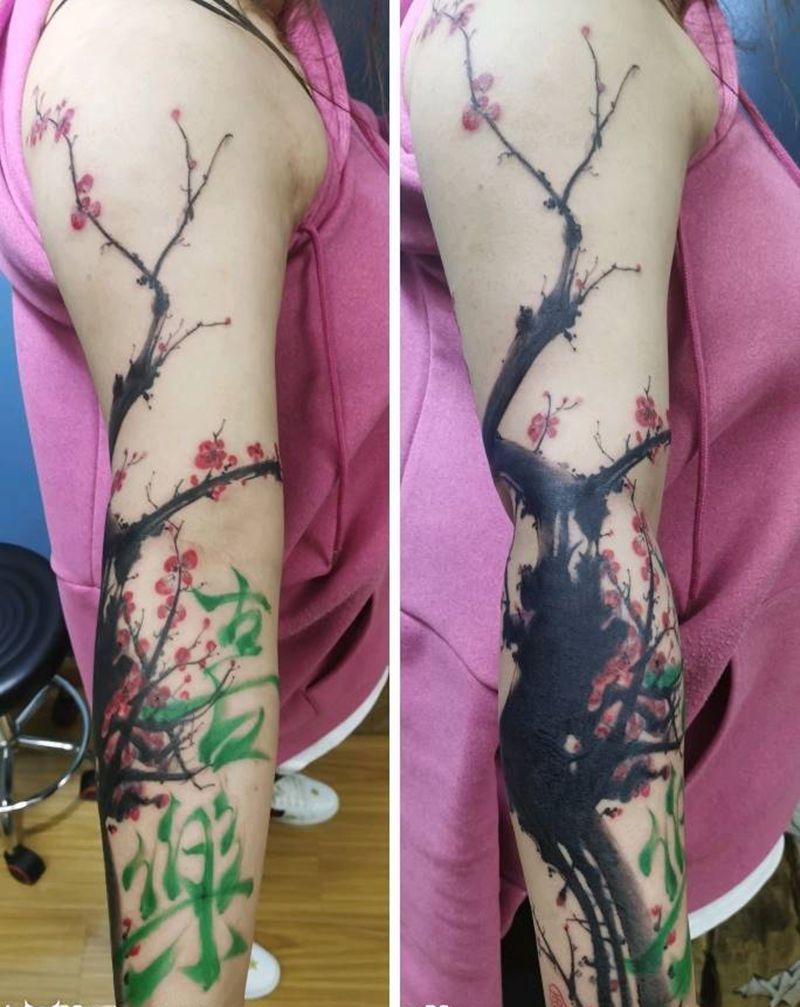 当前位置: 首页 >山东省临沂市纹身店-墨金刺青纹身图案>喜乐(梅花)纹身图片_手臂水墨纹身图案