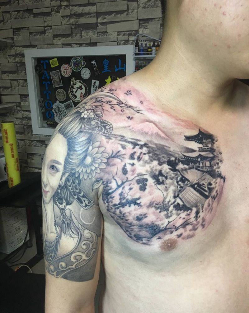 • 男性大花胸_42张优秀的男性大花胸纹身图案图片