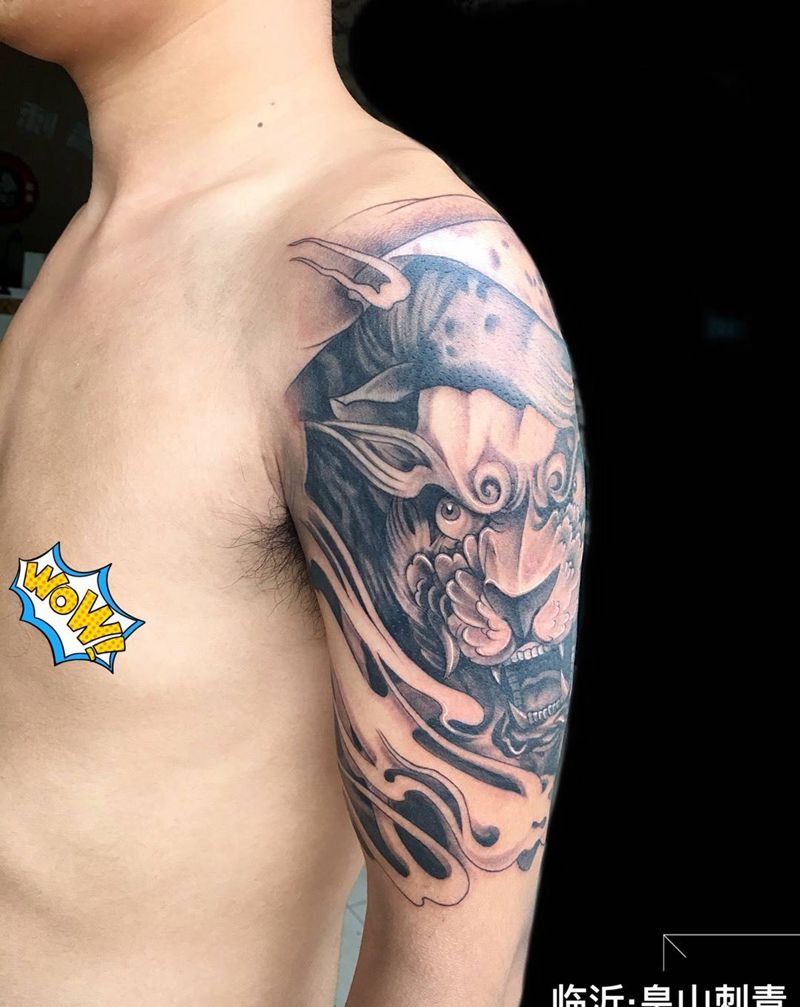 当前位置: 首页 >山东省临沂市纹身店-皇山刺青纹身图案>大臂唐狮纹身图片