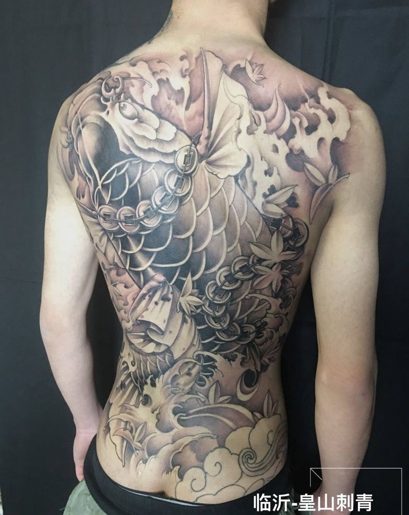 当前位置: 首页 >山东省临沂市纹身店-皇山刺青纹身图案>满背招财鲤鱼纹身图片