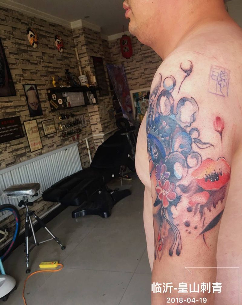 当前位置: 首页 >山东省临沂市纹身店-皇山刺青纹身图案>花旦遮盖旧图纹身图片