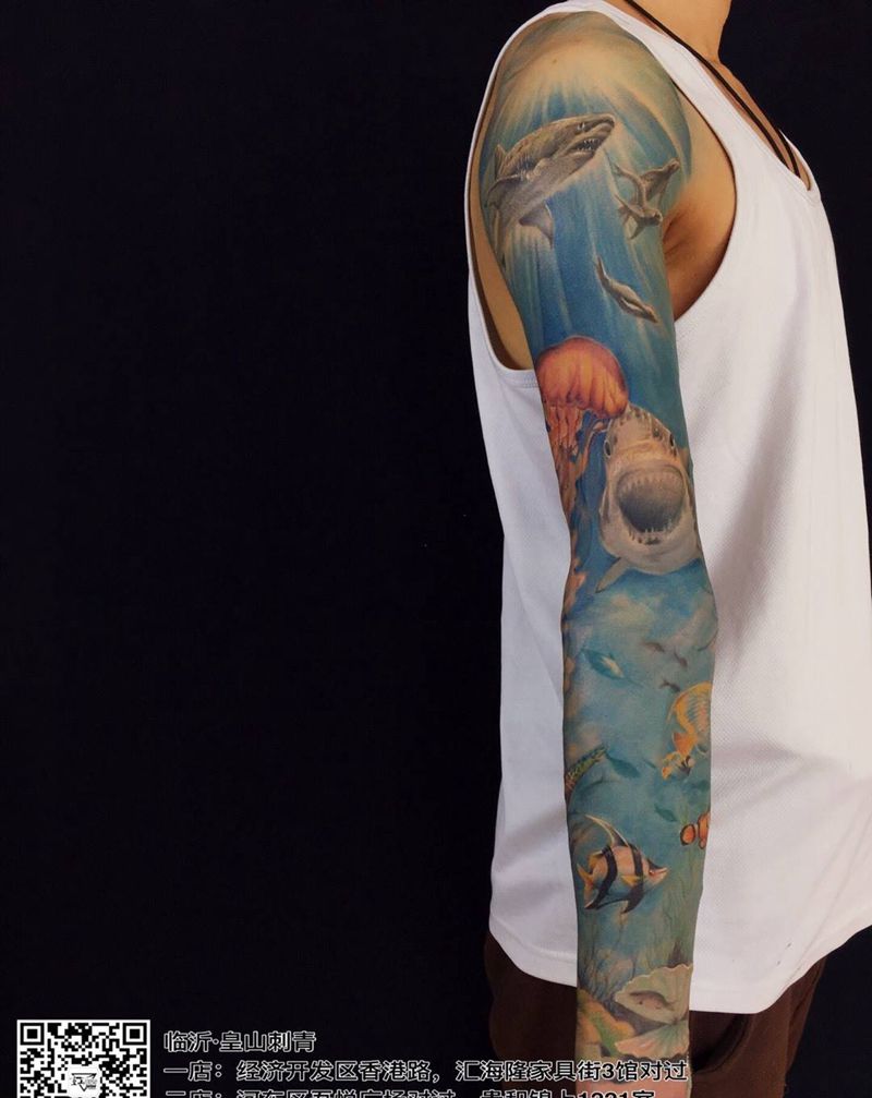 当前位置: 首页 >山东省临沂市纹身店-皇山刺青纹身图案>海底世界花臂纹身图片