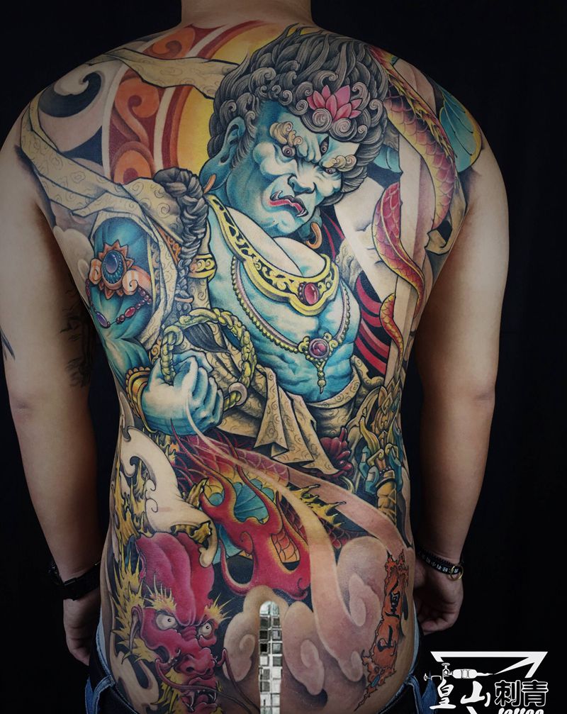当前位置: 首页 >山东省临沂市纹身店-皇山刺青纹身图案>第二届山东纹身展纹身图片_背部腿部新传统水彩纹身图案