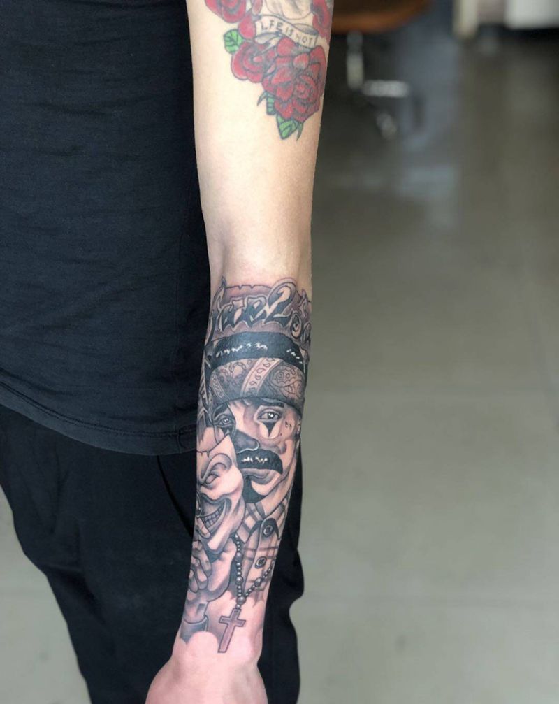 当前位置: 首页 >山东省临沂市纹身店-皇山刺青纹身图案>欧美小丑小臂纹身图片_手臂欧美写实纹身图案