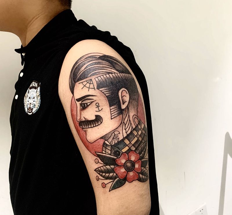 当前位置: 首页 >山东省临沂市纹身店-郯子湖小区纹身图案>old school绅士纹身图片_手臂Old School纹身图案