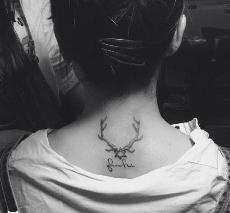 当前位置: 首页 >山东省临沂市纹身店-郯子湖小区纹身图案>鹿角星纹身图片_成品背部清新字符动物几何宗教纹身图案