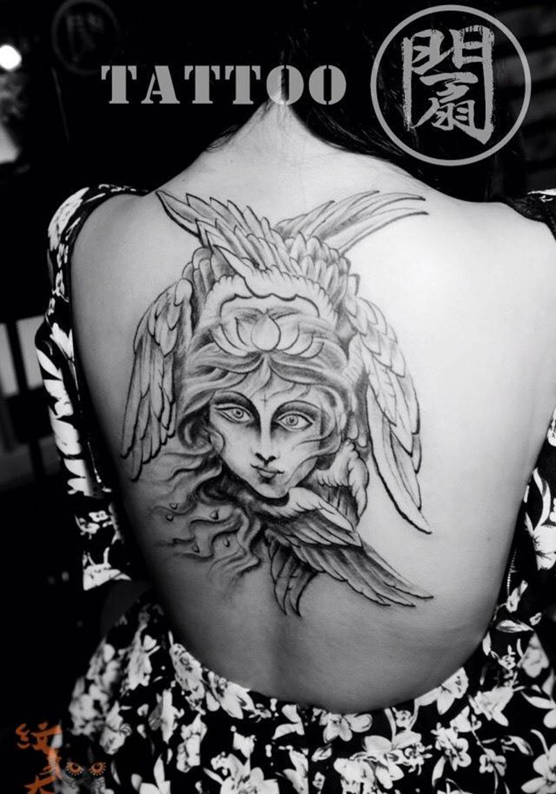 当前位置: 首页 >山东省临沂市纹身店-郯子湖小区纹身图案>六翼天使纹身图片_成品背部欧美清新鬼神动物人物纹身图案