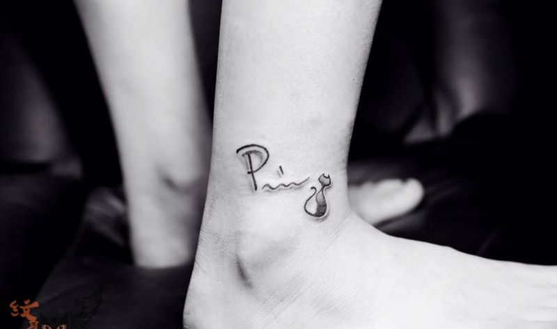 小清新猫咪纹身图片_成品脚部清新几何动物原创纹身图案