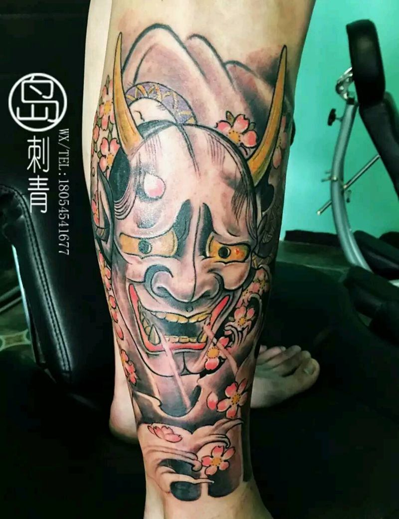 • T包小腿吹火男+阿多福纹身图片_腿部老传统新传统吹火男阿