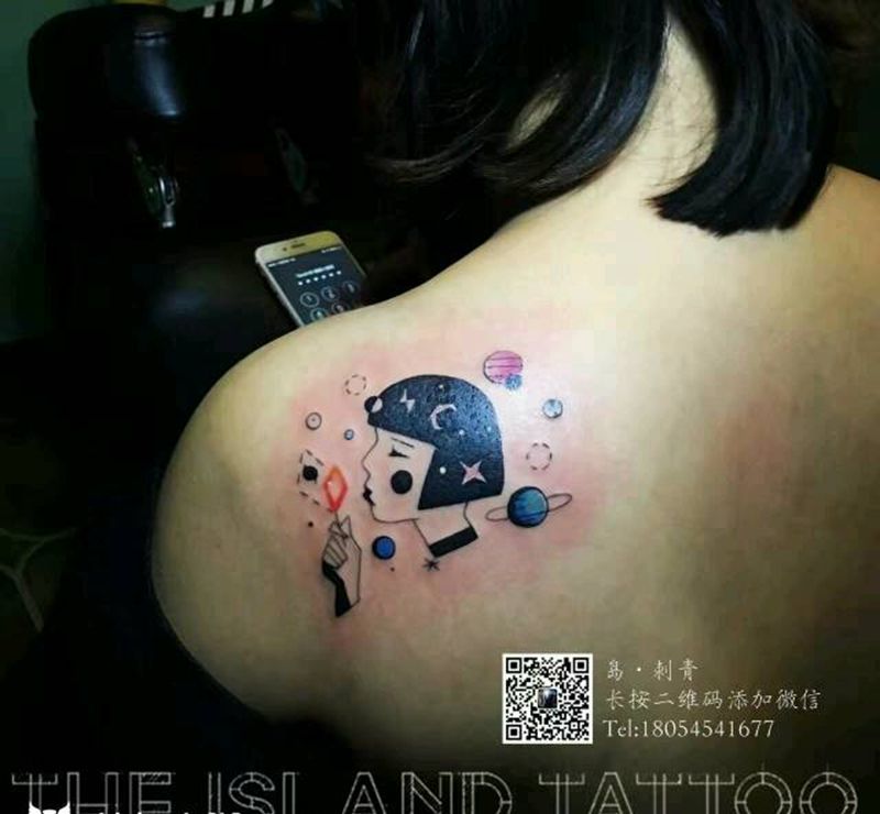 当前位置: 首页 >山东省临沂市纹身店-郯子湖小区纹身图案>彩色小清新纹身图片_肩部欧美清新人物植物原创成品纹身图案