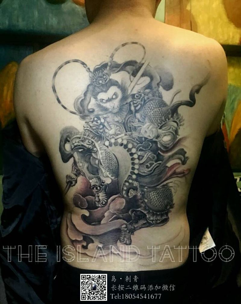 当前位置: 首页 >山东省临沂市纹身店-郯子湖小区纹身图案>满背大圣纹身图片_背部传统写实鬼神宗教成品纹身图案
