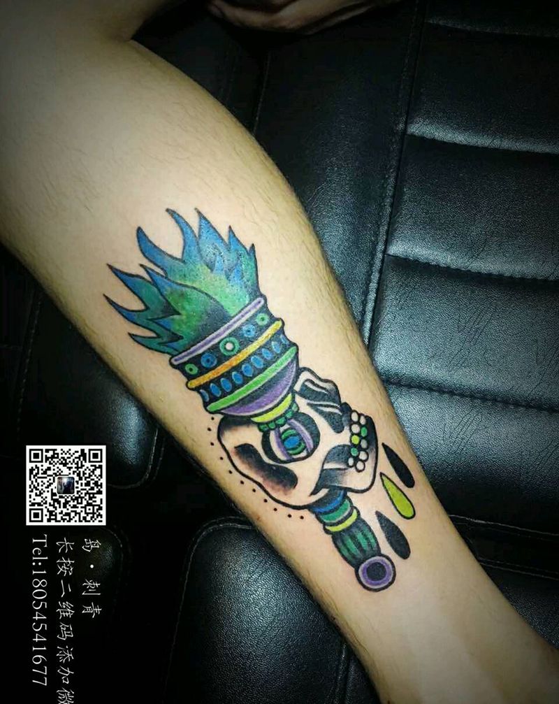 • T包小腿吹火男+阿多福纹身图片_腿部老传统新传统吹火男阿