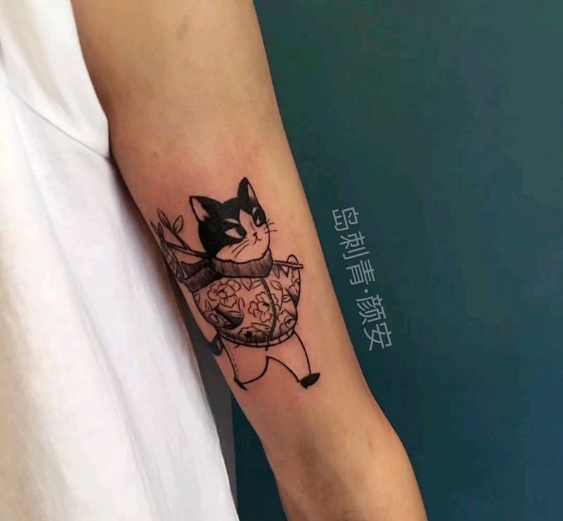 • T招财猫纹身图片